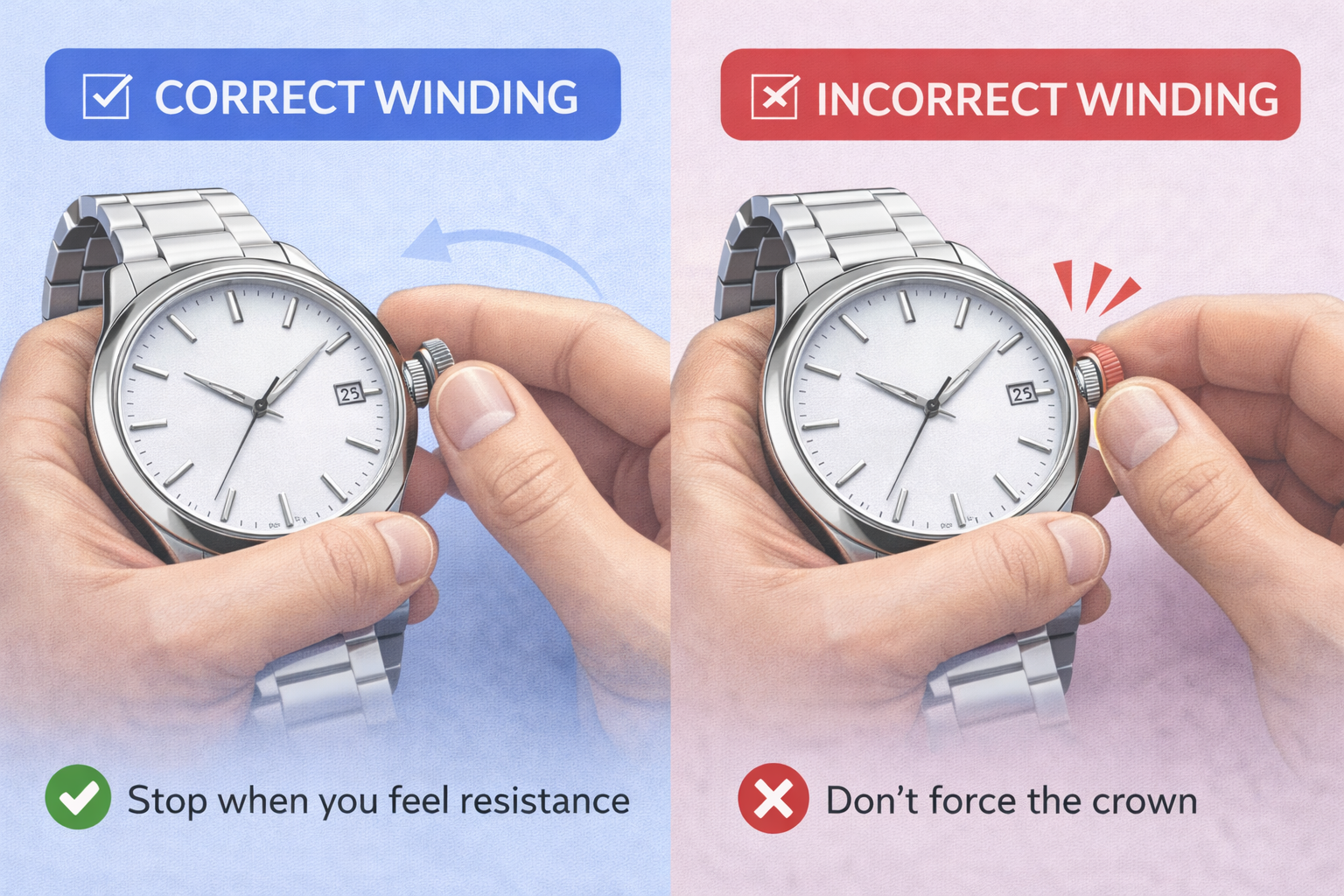 ❌ Over-winding the crown