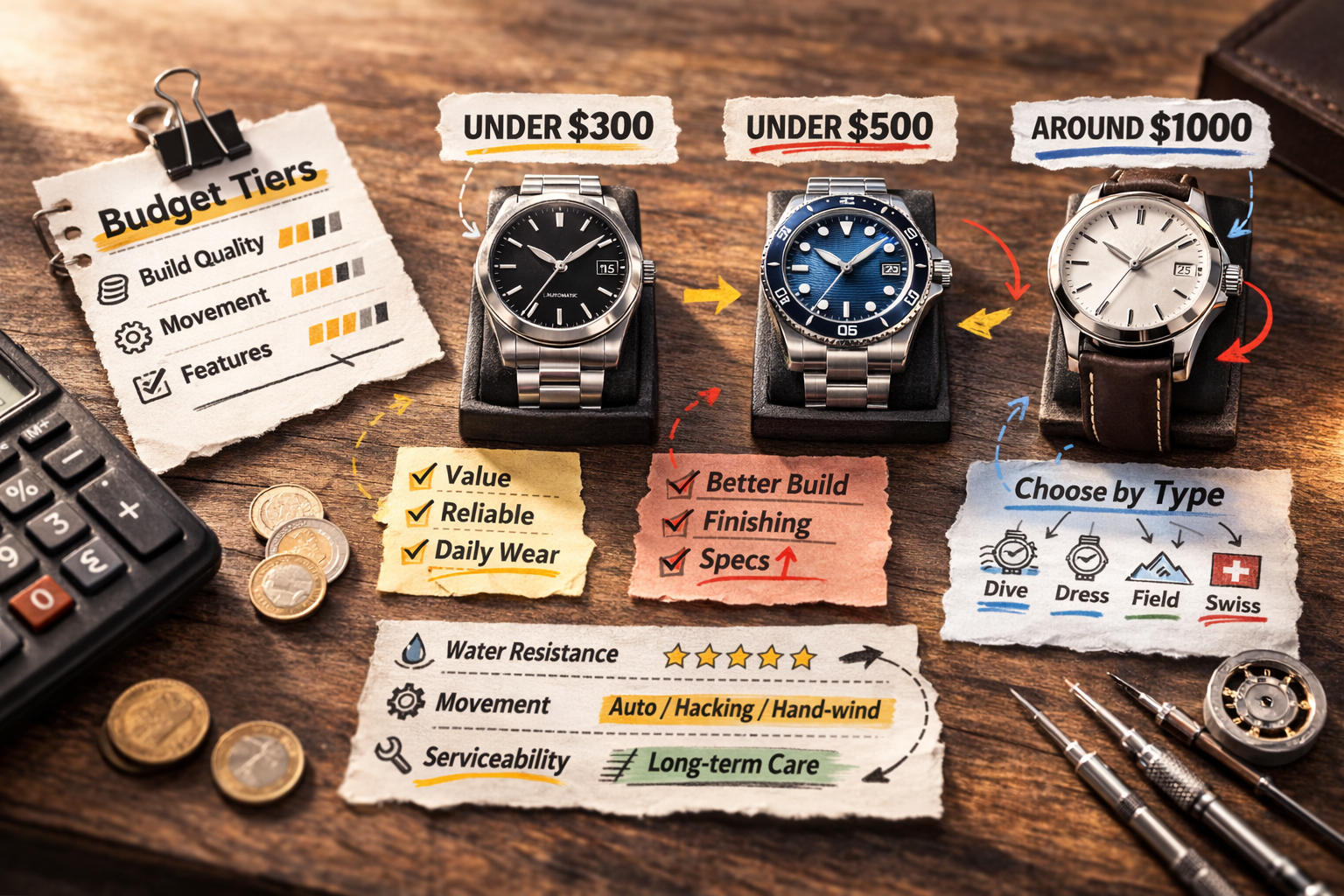 | Around $1000 | Specialized categories, premium feel | People who want a specific type (dive/dress/field) or Swiss-focused options |