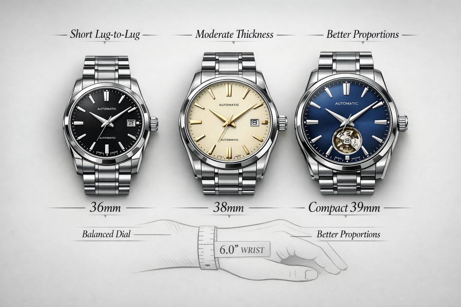 If you are also trying to stay inside a budget, this way of thinking works especially well with Best Automatic Watches Under $300: Affordable & Reliable Picks, Best Automatic Watches Under $500: Premium Value Without Overspending, and Best Swiss Automatic Watches Under $1000: Luxury Feel Without the Luxury Price, because proportion matters at every price point.