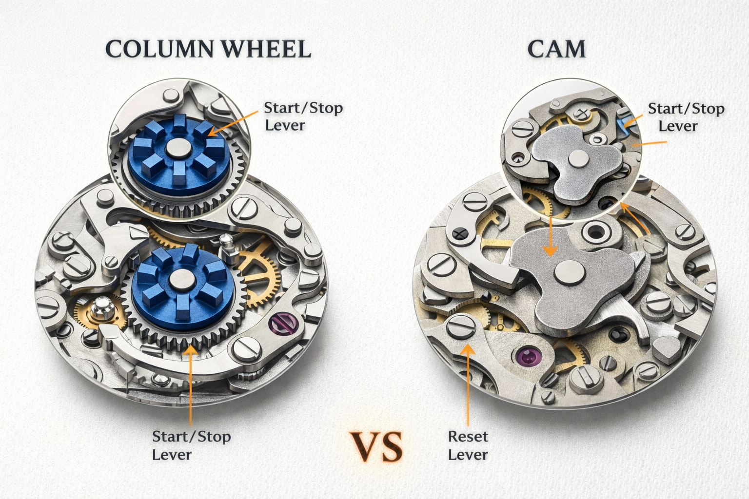 Column Wheel vs Cam Chronograph: Differences, Feel, Reliability & What to Choose