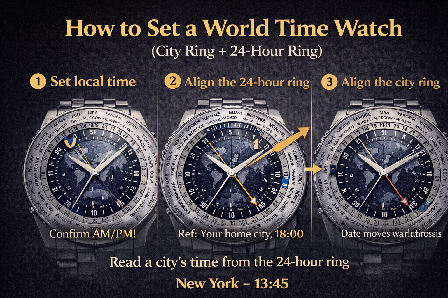 How to Set a World Time Watch: Step-by-Step Guide for City Rings and 24-Hour Discs