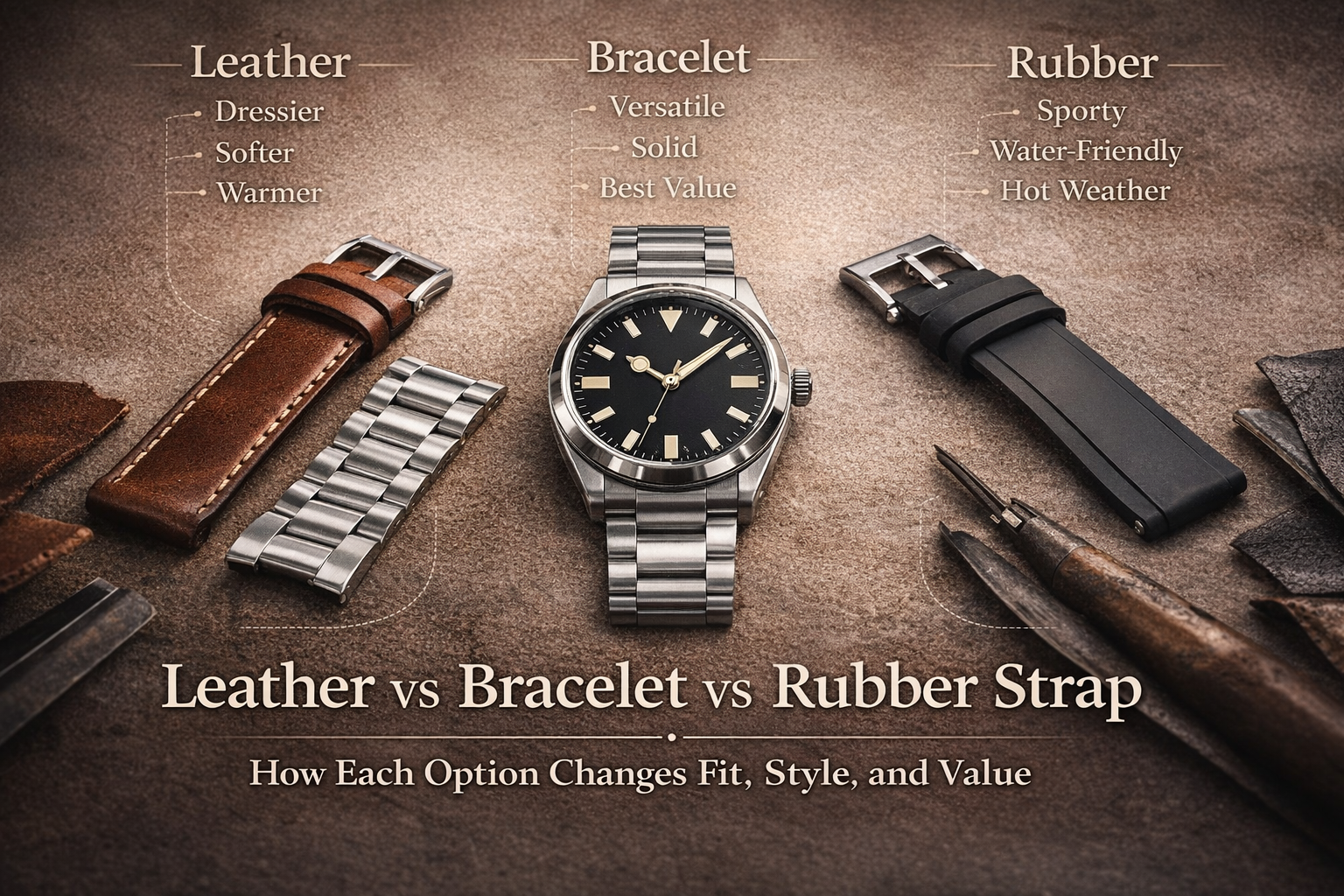 Leather vs Bracelet vs Rubber Strap: How Strap Choice Changes Fit, Style, and Value