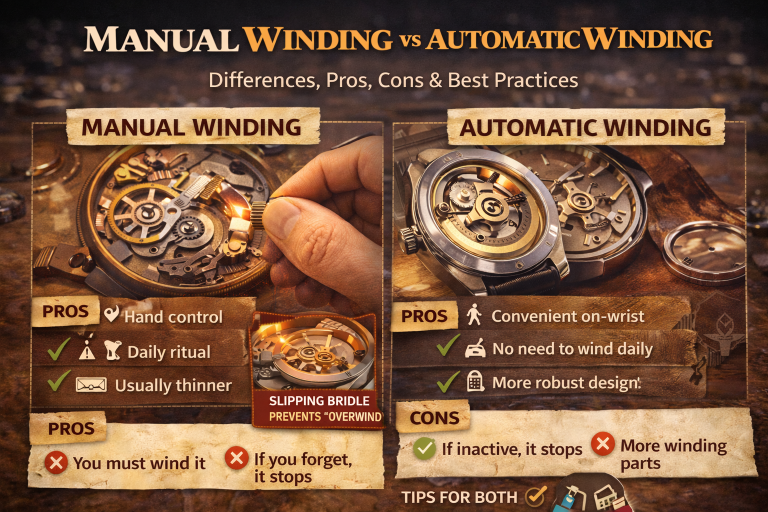 Manual Winding vs Automatic Winding: Differences, Pros, Cons & Best Practices