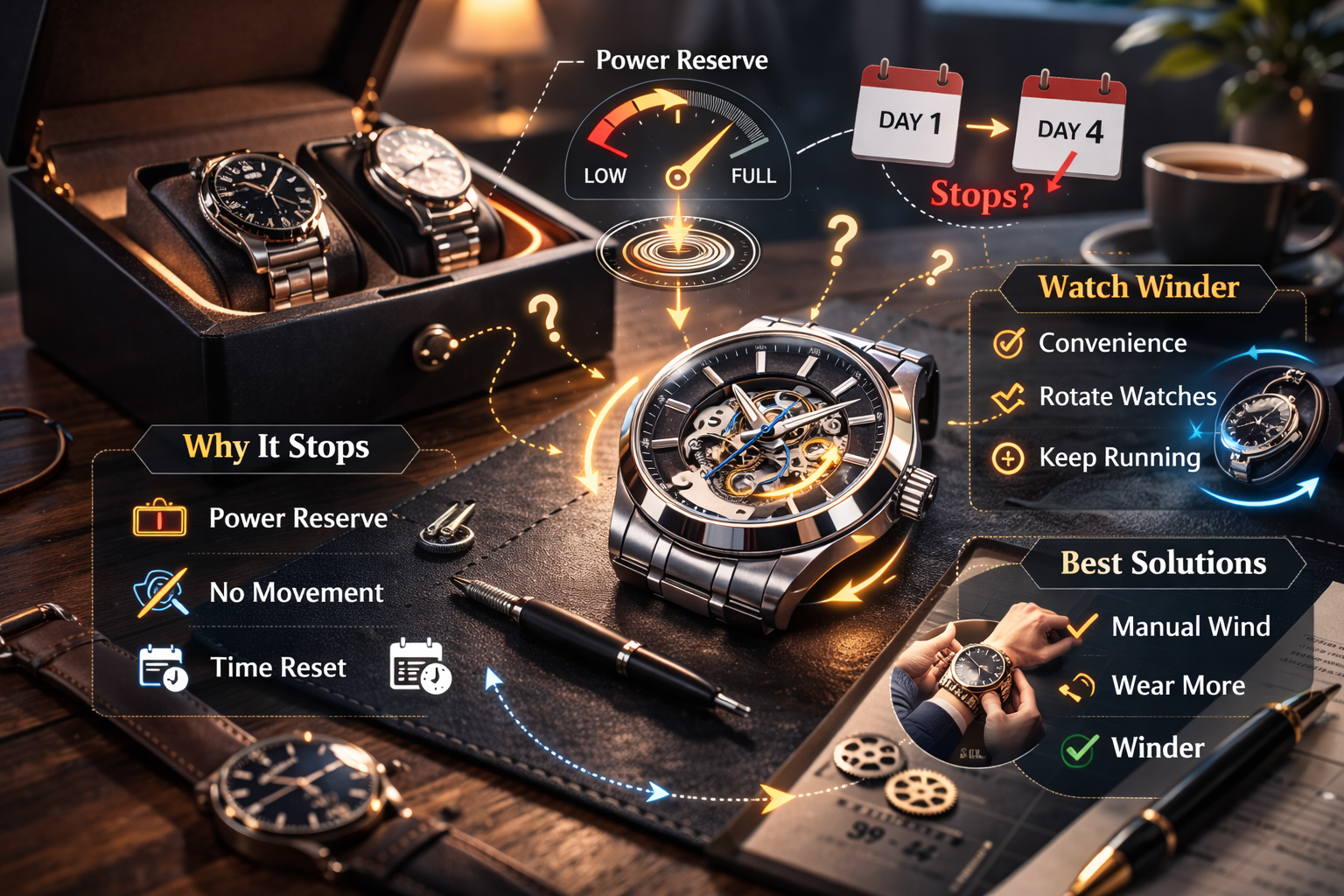 If your automatic watch stops when not worn, that’s normal—here’s why: Do Automatic Watches Stop If Not Worn? Power Reserve, Why It Happens & Easy Fixes