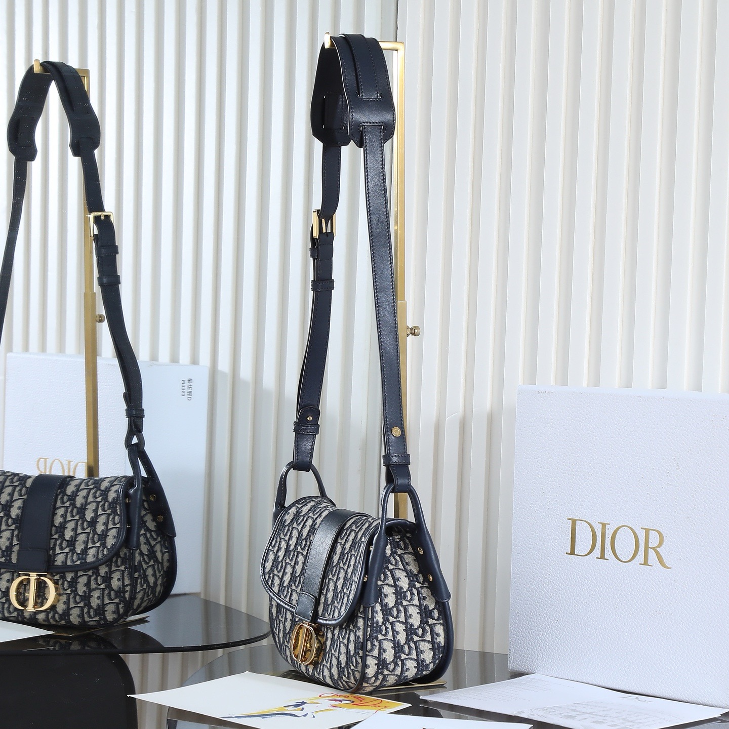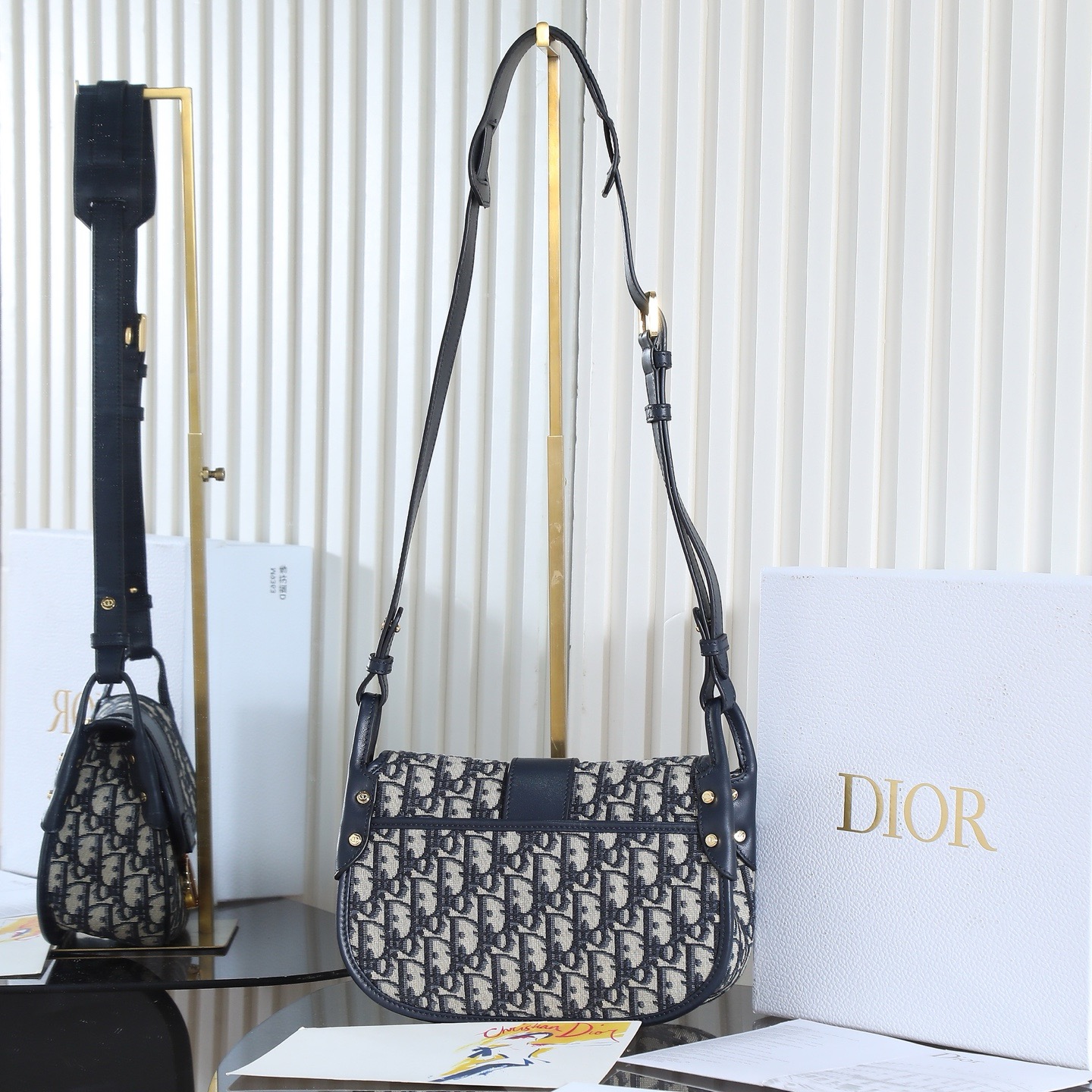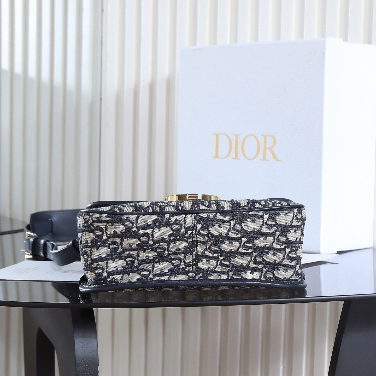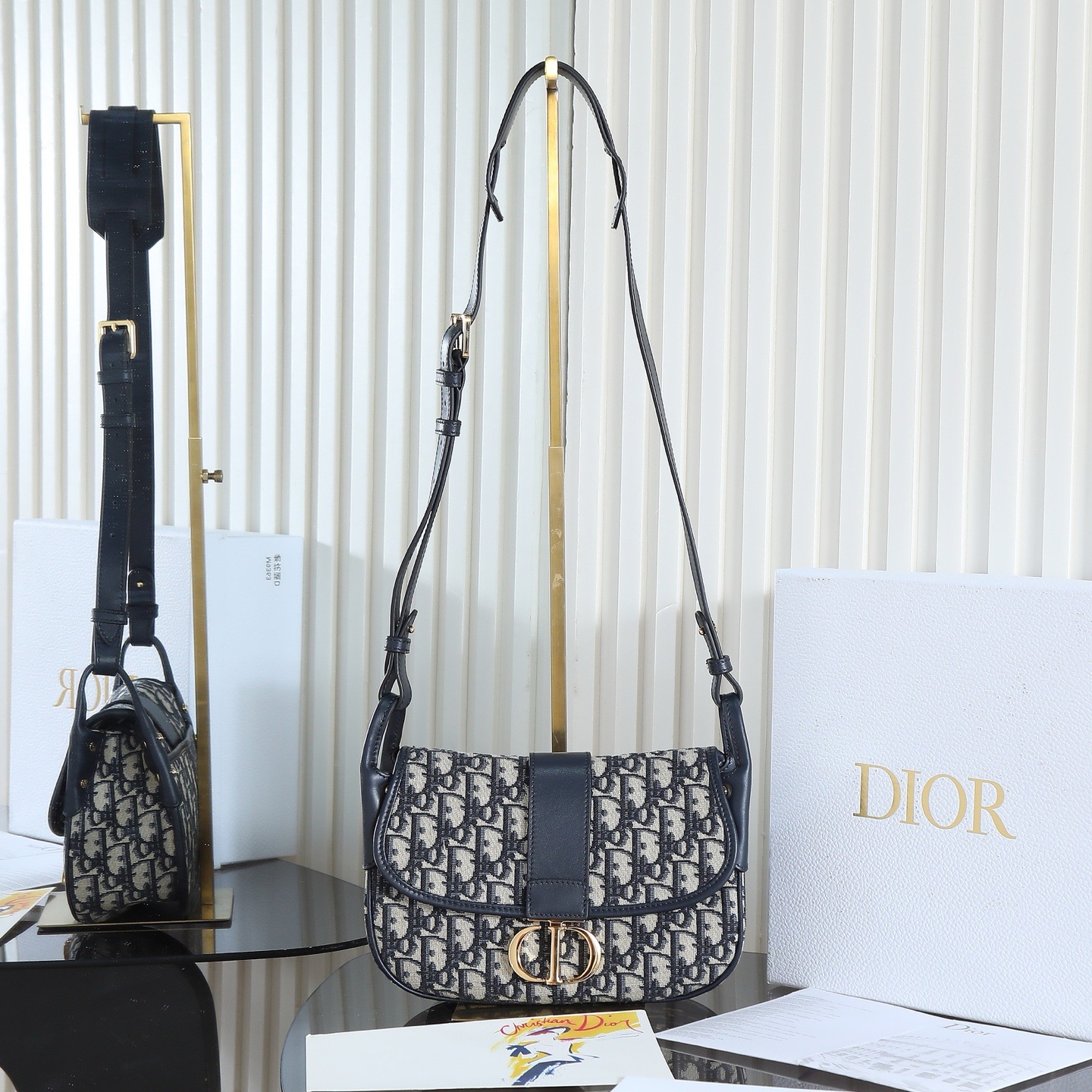 This preppy bag is a new addition to the Fall 2025 ready-to-wear collection, enriching the 30 Montaigne collection with a casual design and elevated by elegant details. Crafted from materials including blue Oblique printed fabric, it features a soft silhouette and a front logo. The spacious and practical interior includes a slip pocket for everyday essentials. The medium size comes with an adjustable, detachable cowhide leather shoulder strap, allowing for shoulder or crossbody wear, and can be paired with a variety of casual or sophisticated looks this season.