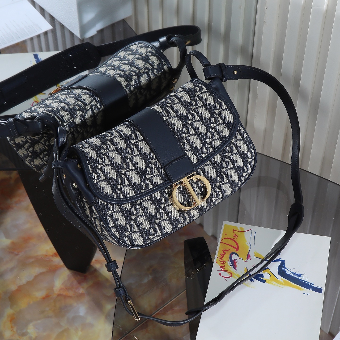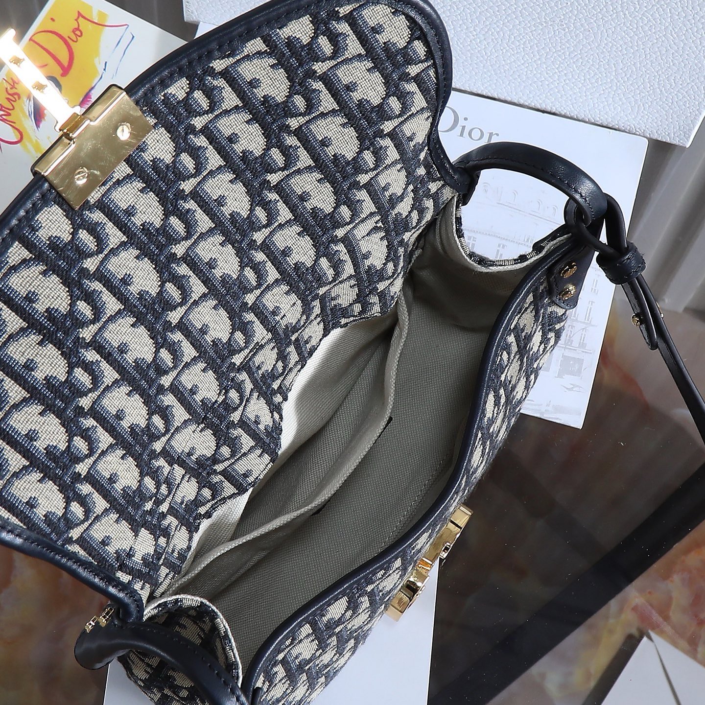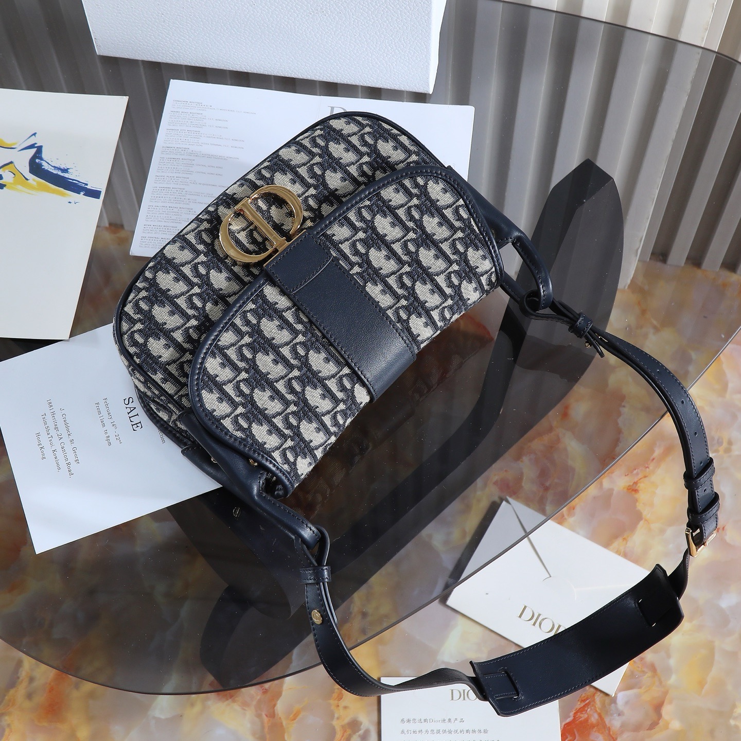 Dior Montaigne Preppy Bag "Blue Oblique Fabric" Medium, Model: 9363