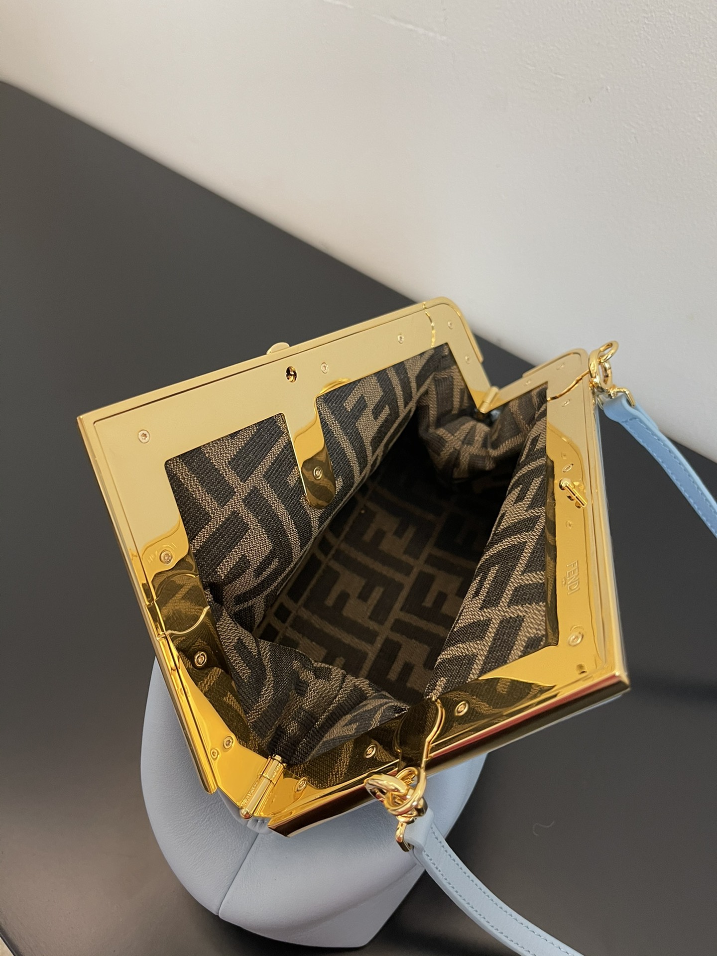 Designed by Kim Jones, this first Fend1 bag revolutionizes traditional bag designs. The large logo lock with metal trim, combined with the bag's design, blends architectural deconstruction with fashion, creating an elegant yet edgy look that instantly catches the eye! Carry it to an evening event for a powerful presence, or wear it crossbody for a sophisticated street chic vibe!