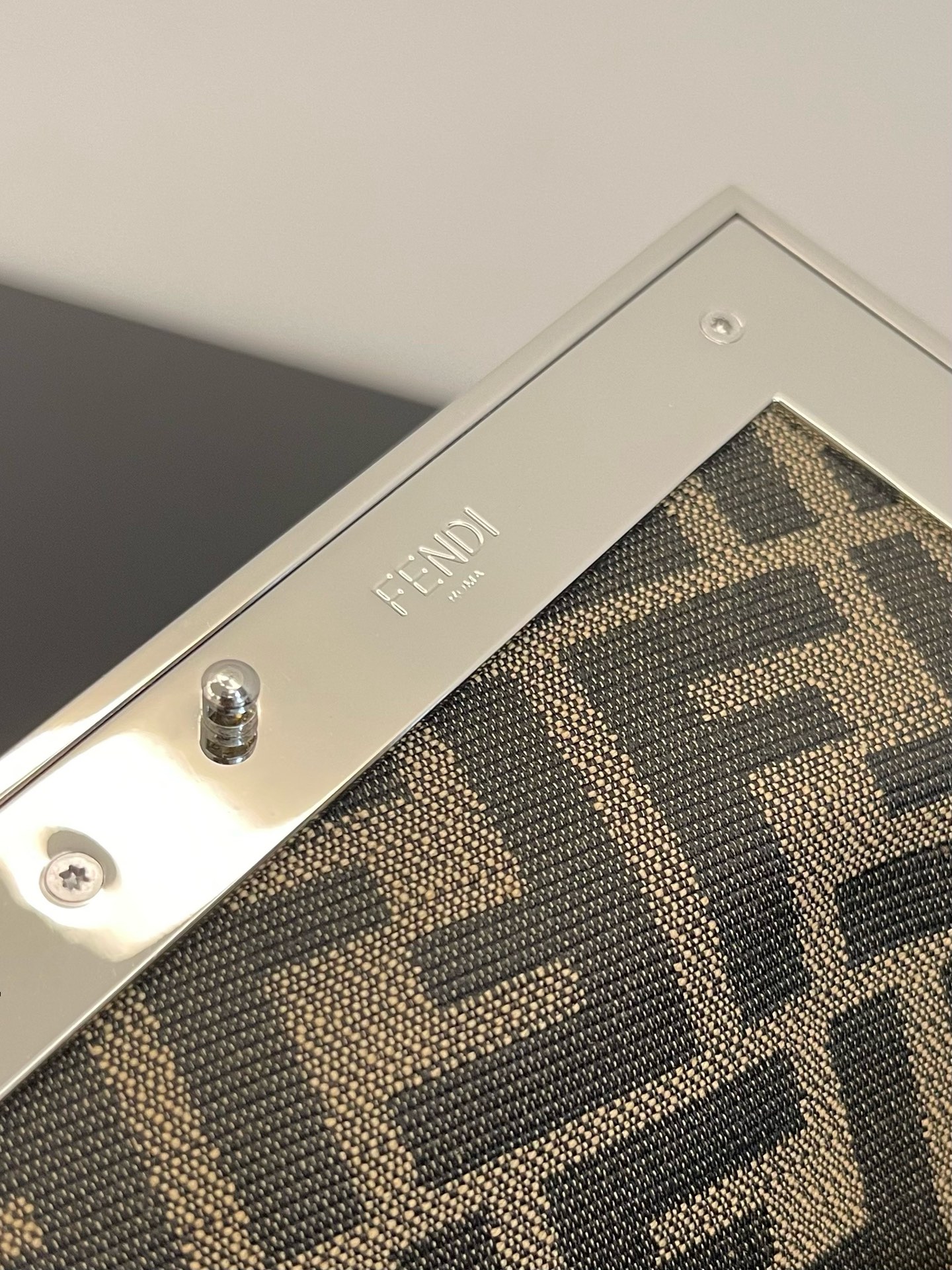 Designed by Kim Jones, this first Fend1 bag revolutionizes traditional bag designs. The large logo buckle and metal trim, combined with the bag's design, blend architectural deconstruction with fashion, creating an elegant yet edgy look that instantly catches the eye! Carry it to an evening event for a powerful presence, or wear it crossbody for a sophisticated street chic vibe!